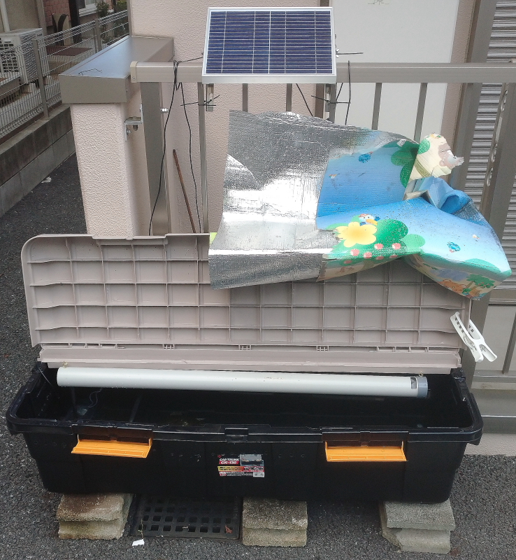 直射日光を避ける為、ピクニックシートで遮蔽しているが再考が必要な部分。