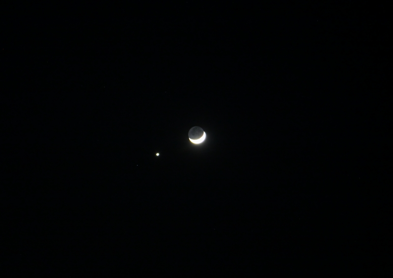 「月齢3.8の月と金星」EOS50D・・・赤道義に設置して、もう少し長玉で撮りたいが直ぐに