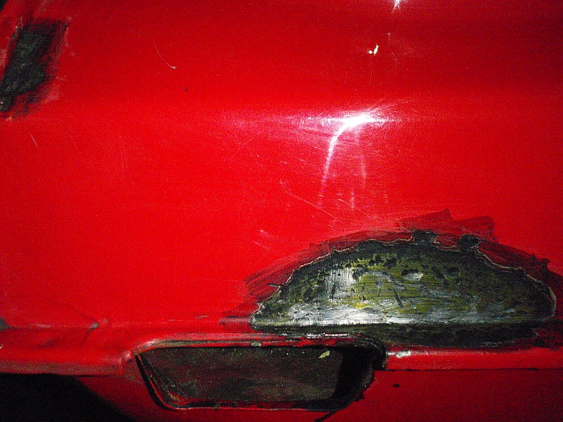 半田板金#3 ×[PR]上記の広告は3ヶ月以上新規記事投稿のないブログに表示されています。新しい記事を書く事で広告が消えます。 コメント ただいまコメントを受けつけておりません。 半田板金#3 今回は、運転席側の穴を塞ぎました。 充てる板を「0.4mmの生」から穴の形に切り出し、裏からアルミテープで固定。 隙間を埋める様に半田を盛り付けて行きます。 盛り付け後、削り平にした処。 この段階で、裏のアルミテープを剥がし穴が塞がって居るか?確認。 錆び転換剤を塗りまして、6時間後にパテを入れられます。 地金の表面が荒れているので、無理に削らずパテで成型しようと思います。 PR コメント コメントする お名前 タイトル メールアドレス URL コメント パスワード コメント送信
