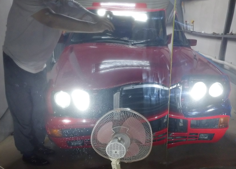 購入時、ロービーム側は反射板のメッキが剥がれ黒い成型地が出て居ました。