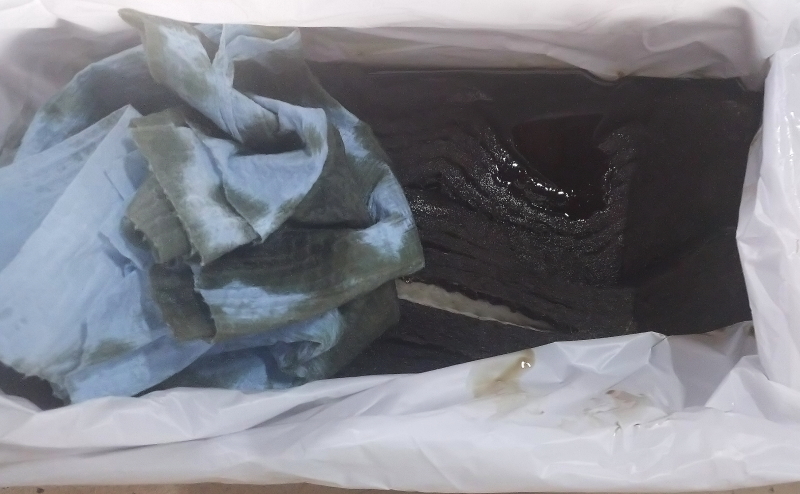 グリスとオイルと水の混合物・・・通常はこんな感じで赤色は無い。