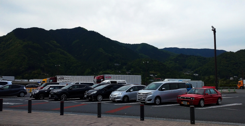 SAに滑り込む・・・平日の割に、そこそこ混んでいる、出店も多い。