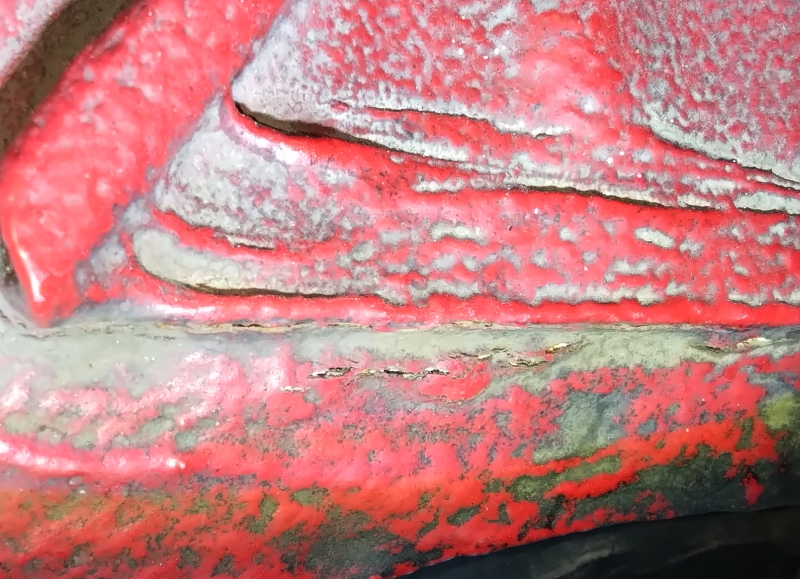 判ります?写真中央下付近に難か亀裂が・・・?
