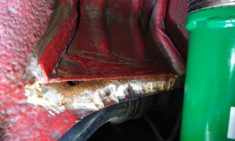 浮き錆を落とす為、削る削る・・・結果・・・高10×長50mmの穴が開きました。