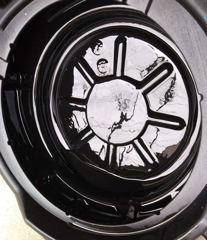 アンダーガード的な位置に居る部品なので、表面にゴム系塗料を塗る・・・ギラギラしてる。