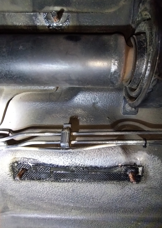 プロペラシャフトのガードらしい?・・・簡単に外れそうだ・・・錆取してやれ。